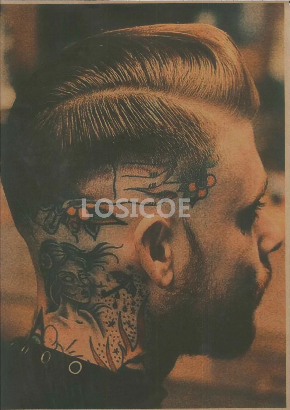 Exquisite Men S Hairstyle Tattoos Patterned Retro Kraft Paper Posters Wall Sticker Modern Art Print Barber Shop Decoration B Aliexpress Home Garden